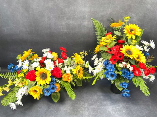 Dzięki użyciu wysokiej jakości sztucznych kwiatów, dekoracje zachowują piękny, naturalny wygląd przez wiele tygodni – niezależnie od pogody. Solidnie dociążone podstawy zapewniają im stabilność i bezpieczeństwo, nawet w przypadku silnego wiatru czy opadów.