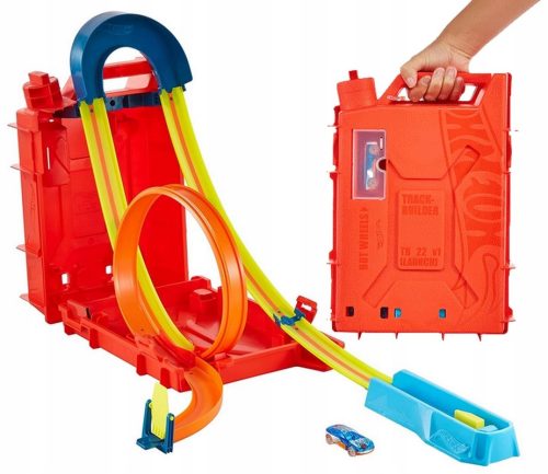 Kanister kaskaderski Hot Wheels Track Builder jest wypełniony wszystkimi składnikami, potrzebnymi by stworzyć niesamowity tor do wyścigów i wyczynów kaskaderskich.