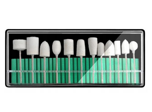 Zestaw uniwersalnych frezów filcowych, polerek służących do polerowania paznokci naturalnych, akrylu, żelu, tipsów. Doskonale usuwają pył po opiłowaniu płytki, a także wygładzają ją i nadają połysk.