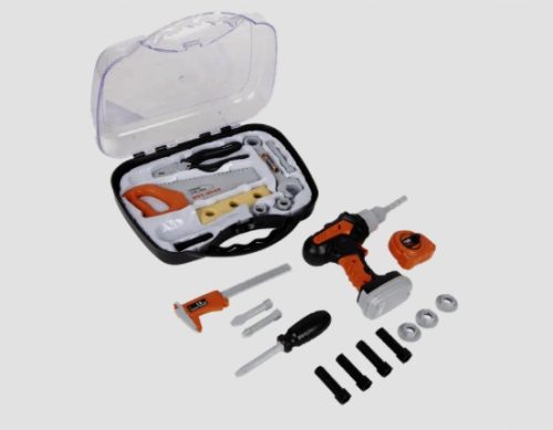 Ten 24-elementowy zestaw zabawkowych narzędzi pomoże w pracach domowych.
