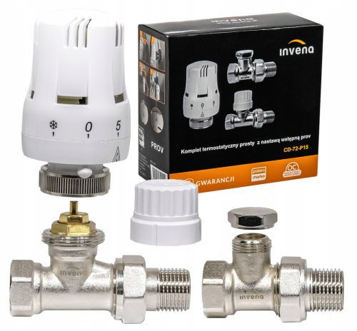 ZESTAW TERMOSTATYCZNY PROSTY Z NASTAWĄ WSTĘPNĄ ZAWÓR ZASILAJĄCY POWROTNY GŁOWICA DO GRZEJNIKA KOMPLET INVENA CD-72-P15-X