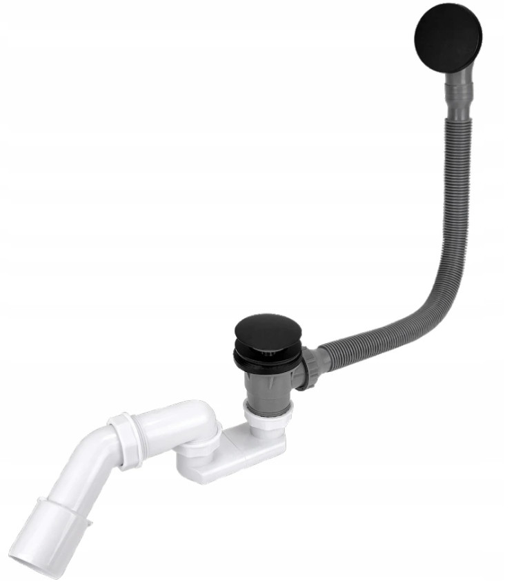 Syfon do wanny KLIK-KLAK czyszczony od góry , czarny mat korek i osłona przelewu wykonane z mosiądzu
