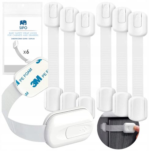 ► SIPO zestaw 6 sztuk regulowanych zabezpieczeń do szaf, szuflad z łatwą funkcją blokady która zapewni szybki dostęp dorosłym ale zabezpieczy przed otwarciem przez małe dzieci.