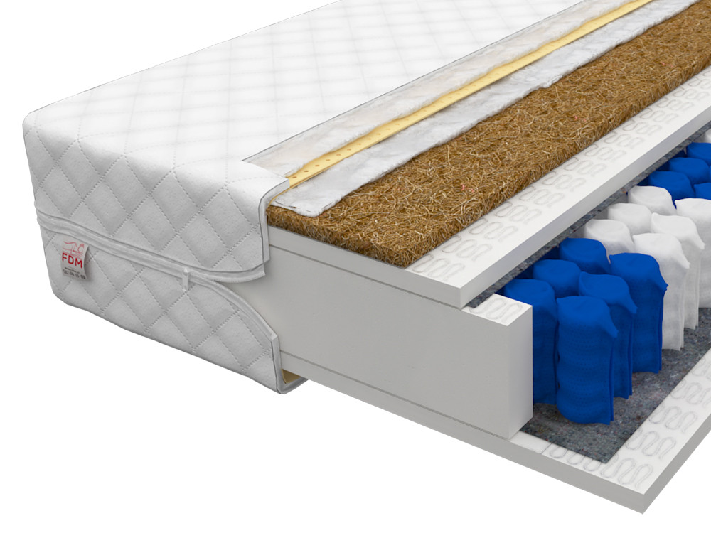 W tym modelu zastosowano również wkład kokosowy. Jest to surowiec naturalny, ekologiczny, pochodzący ze skorup orzecha kokosu. Włókna kokosowe są lekkie i przewiewne, a także bardzo trwałe i elastyczne, odporne na wilgoć i odkształcenia. Poprawiają cyrkulację powietrza wewnątrz materaca, dzięki czemu zapobiegają nadmiernemu poceniu się. Kokos posiada również właściwości antyalergiczne, zapobiega rozwojowi grzybów i roztoczy. Jest on szczególnie polecany klientom preferującym twardsze materace.