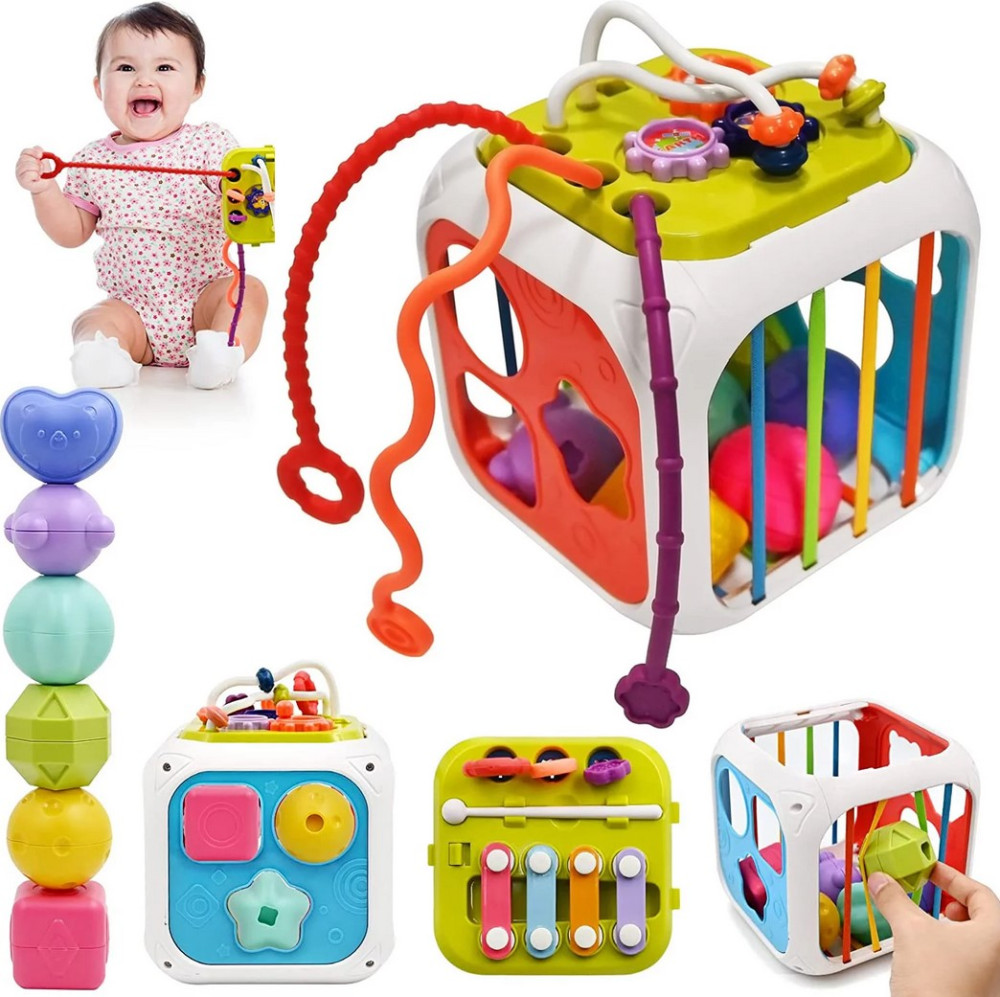 Zabawki sensoryczne — Kolorowe wzory, różnorodne tekstury, rozpoznawanie kształtów, koordynacja wzrokowo-ruchowa, identyfikacja dźwięków — to wszystko w jednej zabawce wspierającej rozwój. Pomaga dziecku rozwijać logiczne myślenie, wyobraźnię i kreatywność.