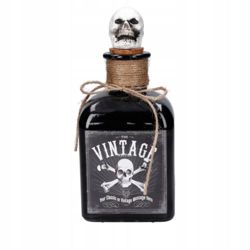 Ta czarna butelka szklana z zakrętką w kształcie białej czaszki to nie tylko efektowna dekoracja, ale również ciekawy dodatek, który wprowadzi wyjątkową atmosferę na Halloweenową imprezę.