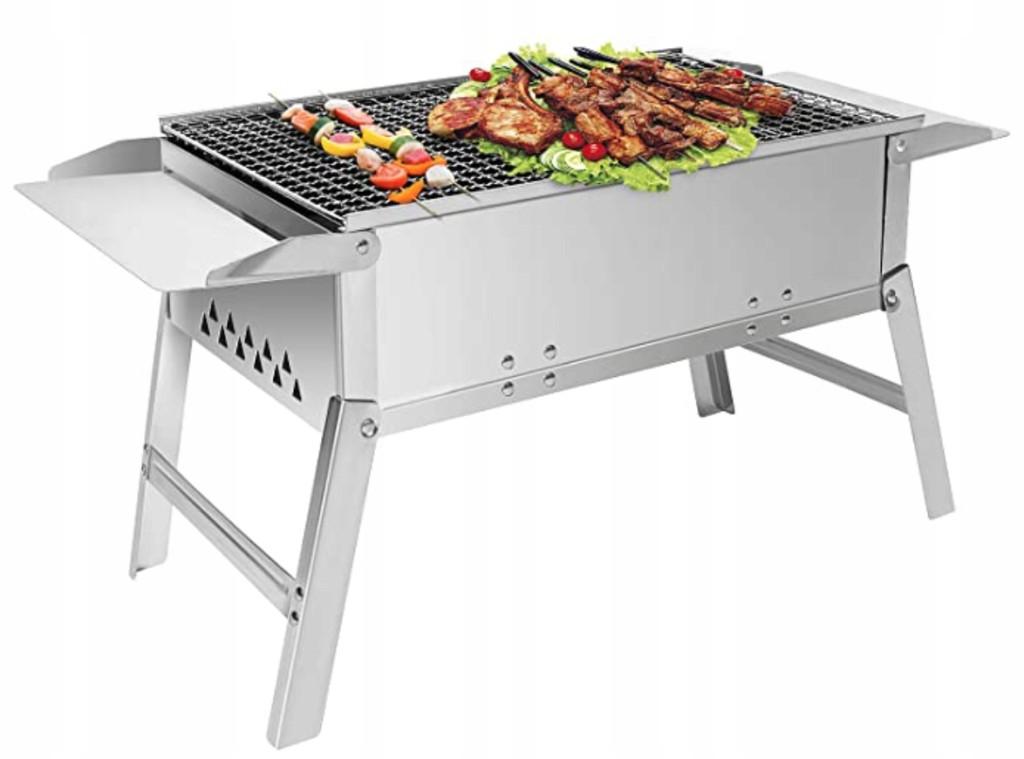Składany grill ze względu na poręczny kształt i niewielką wagę idealnie nadaje się do transportu.