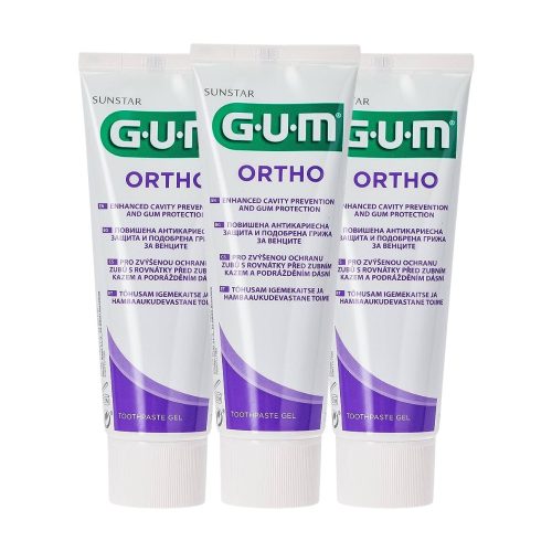 Linia GUM Ortho została specjalnie opracowana, aby chronić zęby i dziąsła podczas leczenia ortodontycznego. Bez względu na rodzaj aparatu, pasta GUM Ortho jest idealnym wyborem do codziennego szczotkowania.