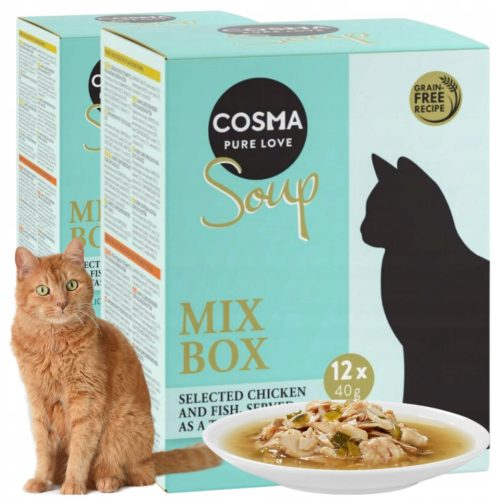 Karma Cosma Soup zapewni Twojemu kotu niezwykłe doznania smakowe poprzez swoją wyjątkową, płynną konsystencję.