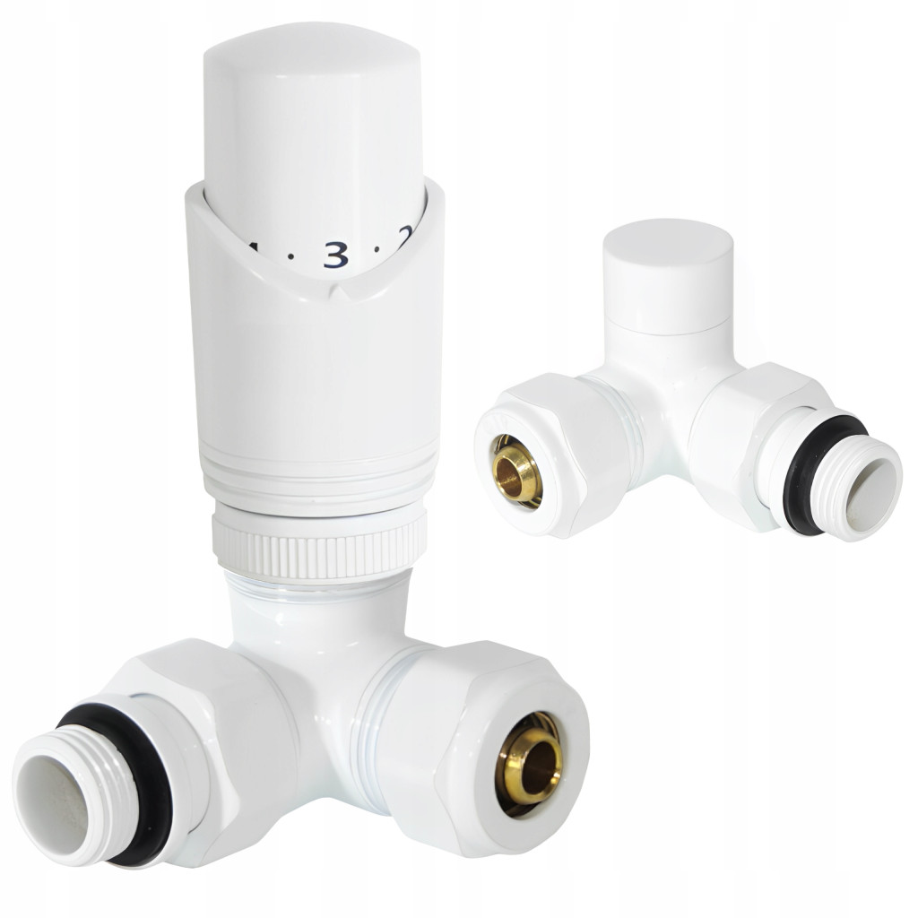 ZAWÓR TERMOSTATYCZNY OSIOWY PRAWY DO GRZEJNIKA BIAŁY 1/2 CALA PEX 16 ZESTAW GOSHE 0300.206