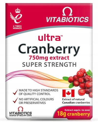 Sposób użycia: Jedna lub dwie tabletki dziennie. Połykać, popijając wodą lub zimnym napojem. Nie należy żuć. Nie należy przekraczać zalecanej dziennej porcji. Ultra Cranberry może być spożywany tak długo jak to niezbędne. Może być spożywany razem z innymi produktami z serii Vitabiotics.