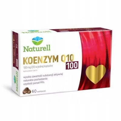 Naturell Koenzym Q10 100 to suplement diety, który zawiera wysoką ilość koenzymu Q10 (w ilości 100 mg) naturalnego pochodzenia, który jest produktem naturalnej fermentacji. Dzięki temu zawiera ponad 99% formy izomeru koenzymu Q10, która występuje naturalnie w ludzkim organizmie.