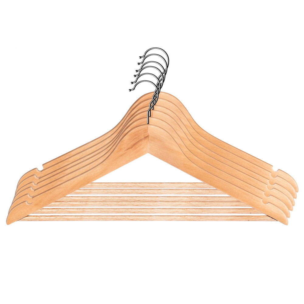 Użyteczny wieszak drewniany, który sprawdza się przy rozwieszaniu ulubionych spodni, koszul czy bluzek. Produkt to podstawowe akcesorium przy porządkowaniu szafy czy garderoby, które ułatwia segregowanie ubrań.