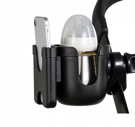 Uchwyt pasje do większości wózków oraz pomieści wszystkie rodzaje telefonów i pojemników na napoje: butelki, bidony, termosy, kubki - wszystko będzie doskonale pasować!