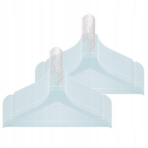 Opływowy kształt wieszaka sprawia, że ubrania stabilnie trzymają się jego powierzchni. Dodatkowym atutem produktu są specjalne wcięcia po bokach, dzięki którym bluzki, koszule i sukienki nie zsuwają się. Wieszak posiada także drewnianą poprzeczkę idealną do przewieszenia spodni.