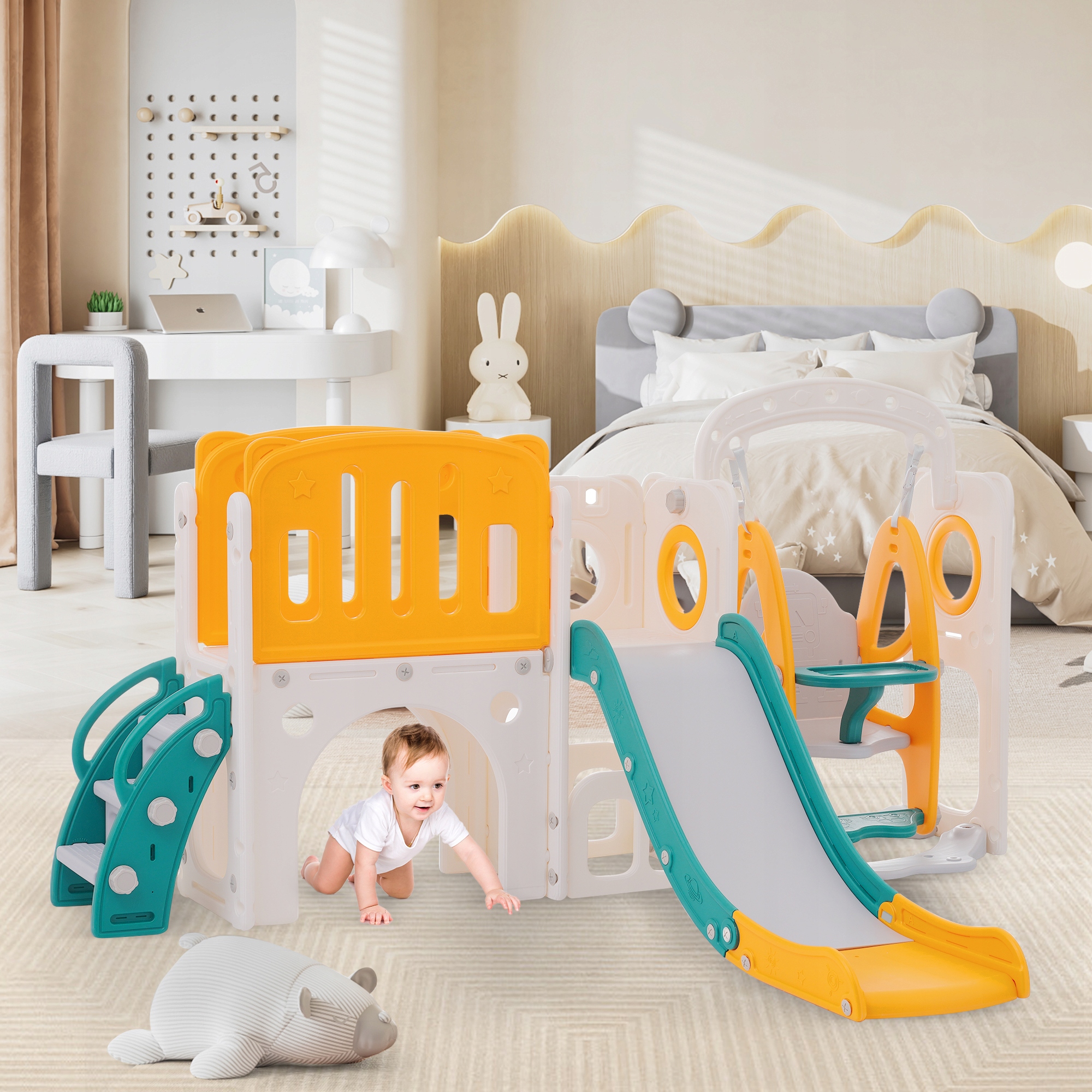 ✅7 możliwości zabawy w jednym: Nasze zjeżdżalnie zapewniają świetną zabawę nie tylko dzięki zjeżdżalniom, ale także piłkom do koszykówki, huśtawkom, schodom, szafce podłogowej i podeście wejściowemu. Zintegrowana gra wiertnicza zapewnia dodatkową różnorodność i rozwój twórczy.