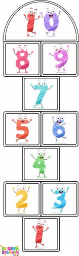 Kolorystyka: biała mata z nadrukiem cyferek w różnych kolorach od 1 do 10