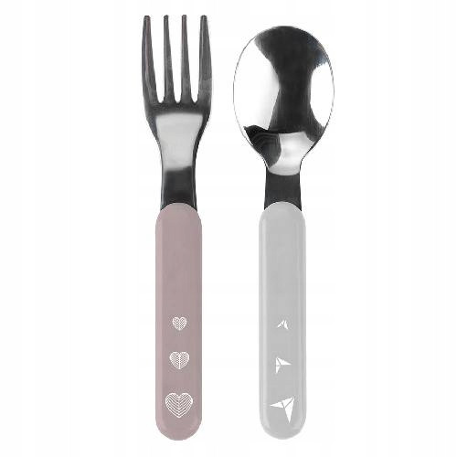 BABYONO Sztućce dla dzieci ze stali szlachetnej różowo-szare