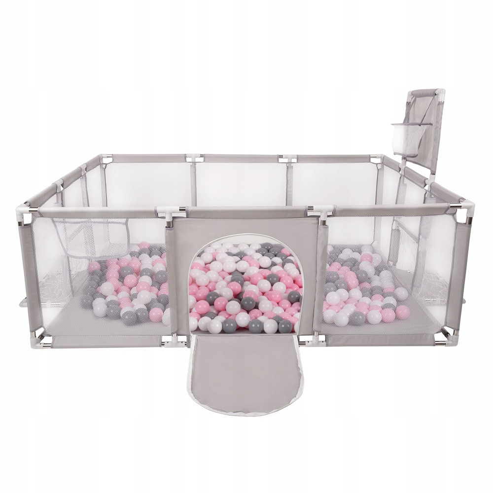 ⭐Składany kojec z plastikowymi piłkami w kształcie mini-boiska zapewni Twojemu dziecku godziny zabawy. Wewnątrz jest wystarczająco dużo przestrzeni, aby w zabawie mogło uczestniczyć swobodnie kilkoro dzieci. Jednocześnie kojec można w łatwy sposób złożyć, dzięki czemu można go schować, lub zabrać ze sobą na wczasy, piknik, czy do znajomych. Boisko posiada dwie bramki do piłki nożnej oraz jedna ze ścianek jest wyposażona w siatkowy kosz do koszykówki. Dzięki temu dzieci mogą zacząć karierę w grach zespołowych.