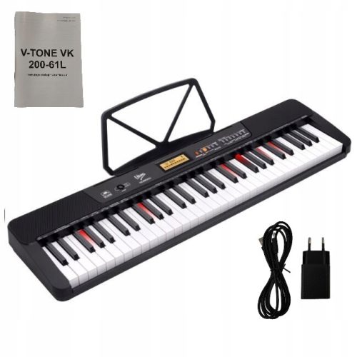 V-TONE VK 200-61L to keyboard edukacyjny dla dzieci z 61 klawiszami, które w trybie lekcji są podświetlane dla lepszej orientacji na klawiaturze. Jest to instrument stworzony z myślą o nauce gry oraz codziennej zabawie z muzyką. Bardzo obszerny bank brzmień, rytmów oraz szeroka paleta dodatkowych funkcji sprawiają, że jest to instrument, który pomaga w rozwijaniu muzycznych zainteresowań i pozwala poznać bogaty świat dźwięków