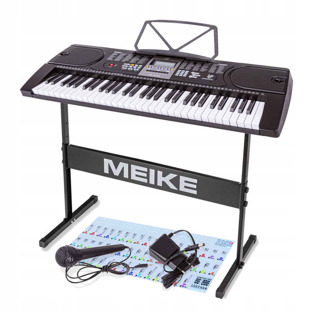 Keyboard ze STATYWEM Organy Naklejki do NAUKI GRY Nuty Stojak pod klawisze