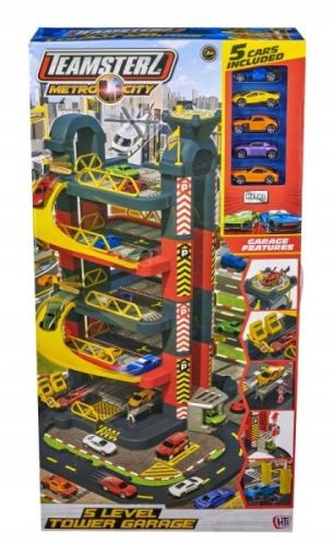 Zabawka 5-poziomowy garaż wieżowy + 5 samochodów Teamsterz Metro City