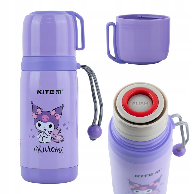 ✔️ Spektakularny design KUROMI naładuje Cię pozytywnymi emocjami i rozweseli: jasny termos dla dzieci stanie się ulubionym dodatkiem ucznia.