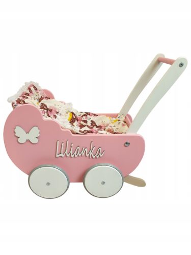 Przykładowy wózek kolor różowy +białe dodatki + dwustronny dekor + dowolna personalizacja