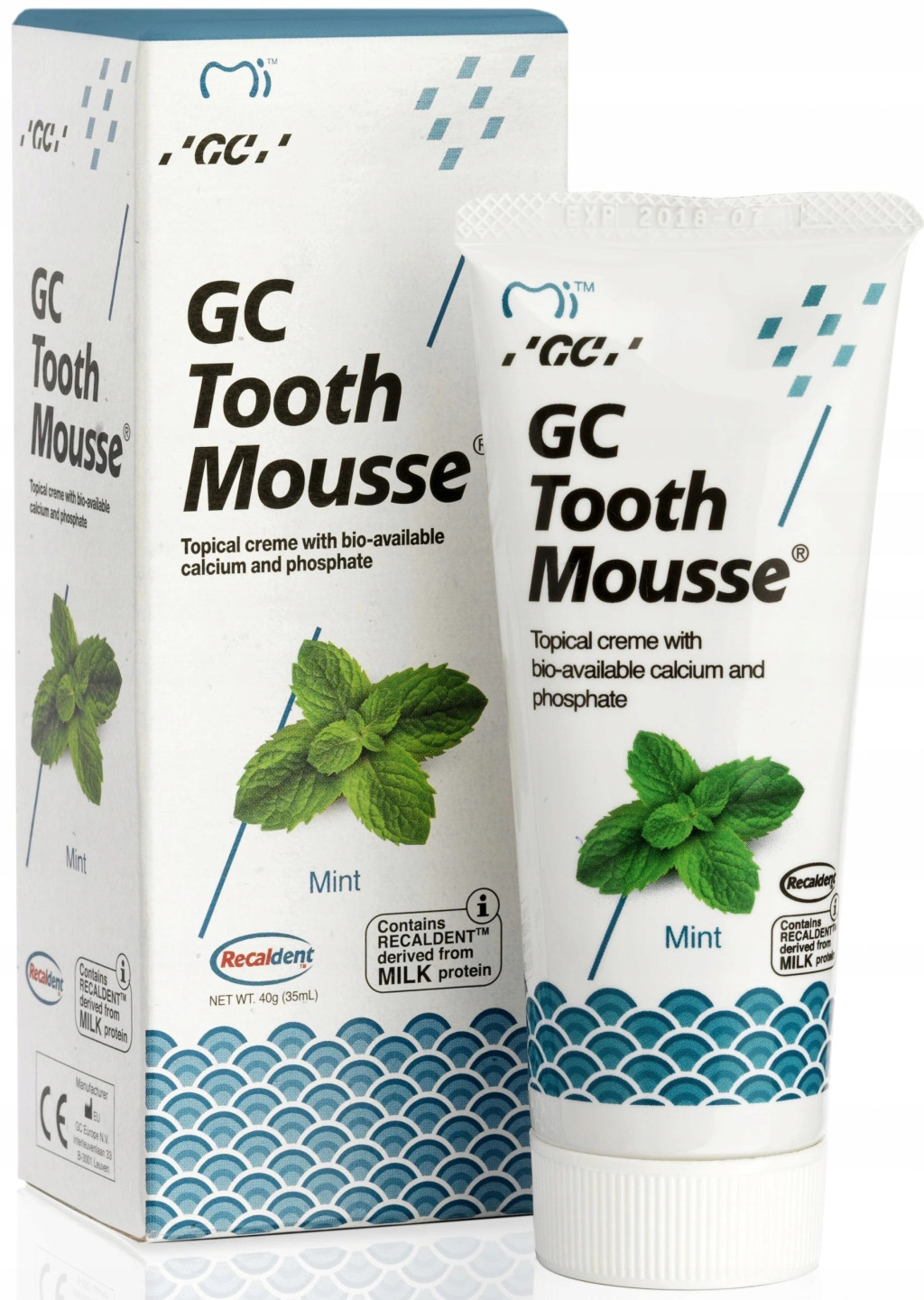 GC TOOTH MOUSSE 35 ml – To specjalistyczny preparat do stosowania miejscowego, stanowi optymalny wybór dla kompleksowej profilaktyki przeciw próchnicy. Tooth Mousse dzięki swoim właściwościom przywraca prawidłową równowagę mineralną w jamie ustnej w zaledwie kilka minut od jego pierwszego zastosowania. Pasta przeciwdziała szkodliwym zmianom odczynu pH oraz dzięki wysokiemu poziomowi cząsteczek wapnia i fosforu – wzmacnia i odbudowuje szkliwo zębów. Produkt nie zawiera cukru