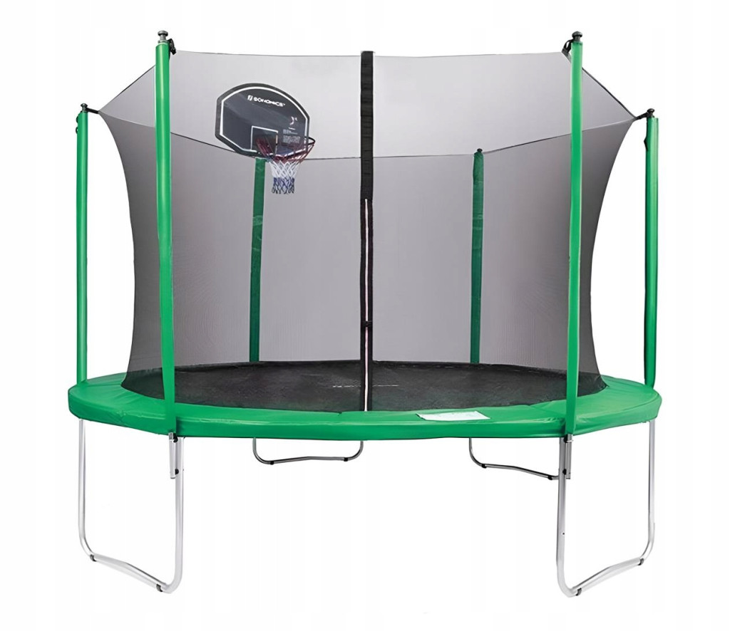 Materiał odporny na promienie UV; Zamknięcie siatki: błyskawiczny zamek i klamry; Osłona sprężyn; Tablica do koszykówki