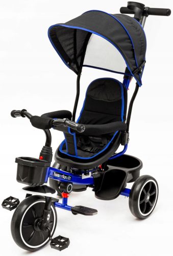 Rowerek posiada funkcję obrotu siedziska, tak by dziecko jechało przodem lub tyłem do kierunku jazdy z zależności od upodobań opiekuna.