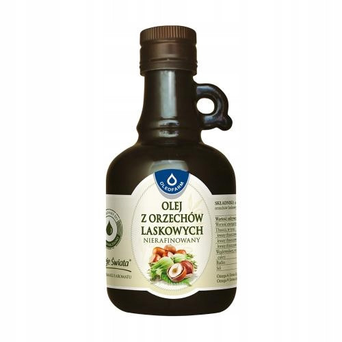 Olej powstaje z wysokiej jakości orzechów laskowych. Charakteryzuje się wyjątkowym, delikatnym smakiem i subtelnym orzechowym aromatem. Jest idealnym dodatkiem do surówek, sałatek, lodów, ryżu i deserów owocowych oraz czekoladowych, nadając im lekko orzechową nutę.