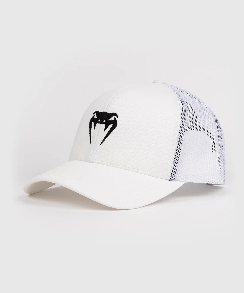 Czapka z daszkiem Venum Classic Trucker ma wyszywane logo Venum w kolorze białym i metkę potwierdzającą autentyczność. Siatkowe plecy typu „trucker” zapewniają oddychający komfort, gdy jesteś w podróży.