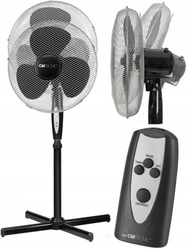 Wentylator stojący z 3 łopatkami o średnicy 40 cm. Clatronic VL 3741 oferuje 3 prędkości, funkcję oscylacji oraz timer na 7,5 godziny. Urządzenie można w łatwy sposób obsługiwać za pomocą pilota zdalnego sterowania.