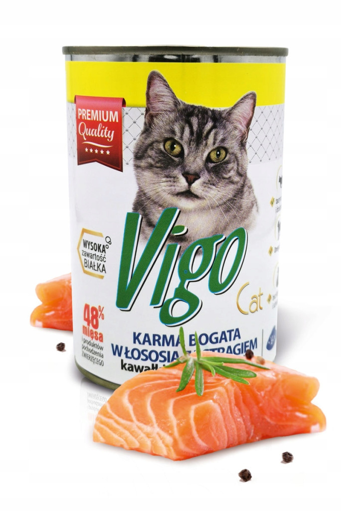 Znakomita mokra karma Premium dla kotów 415g - 48% mięsa w sosie w tym ŁOSOŚ I PSTRĄG.