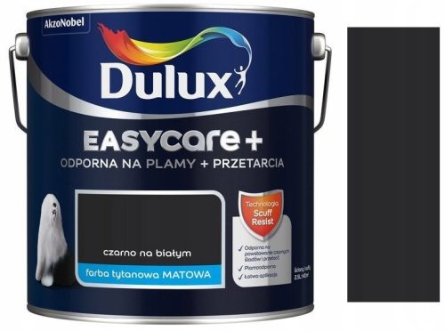 Dulux EasyCare+ to wyjątkowa farba, która charakteryzuje się odpornością na plamy i przetarcia. Udało się to uzyskać dzięki połączeniu farby lateksowej z właściwościami tytanowymi, które odpowiadają za zwiększoną odporność mechaniczną.