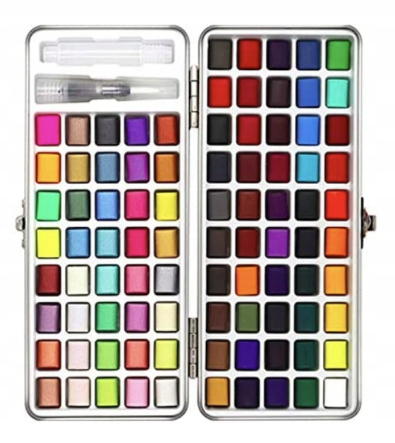 90-kolorów: 50 - przezroczystych akwareli + 36-kolorowe metaliczne perłowe akwarele + 4 kolory fluorescencyjne