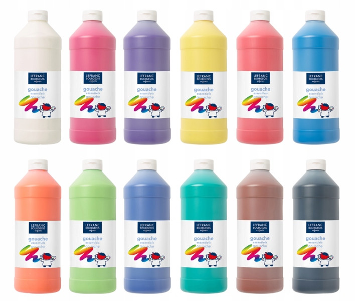 Farba wodna 1 litr, tempera francuskiej firmy Lefranc & Bourgeois w kolorach: ŻÓŁTYM, RÓŻOWYM, CZERWONYM, RÓŻOWYM, NIEBIESKIM, GRANATOWYM, ZIELONYM, CIEMNYM ZIELONYM, CZARNYM, BIAŁYM, BRĄZOWYM, FIOLETOWYM