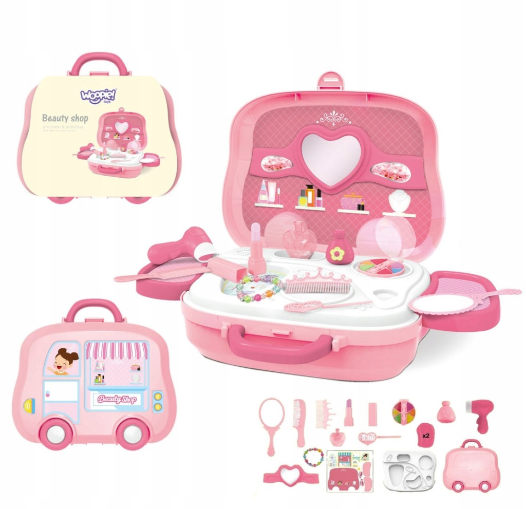 WOOPIE Przenośna Toaletka Salon Urody 2w1 Walizka na Kółkach dla Dziewczynki