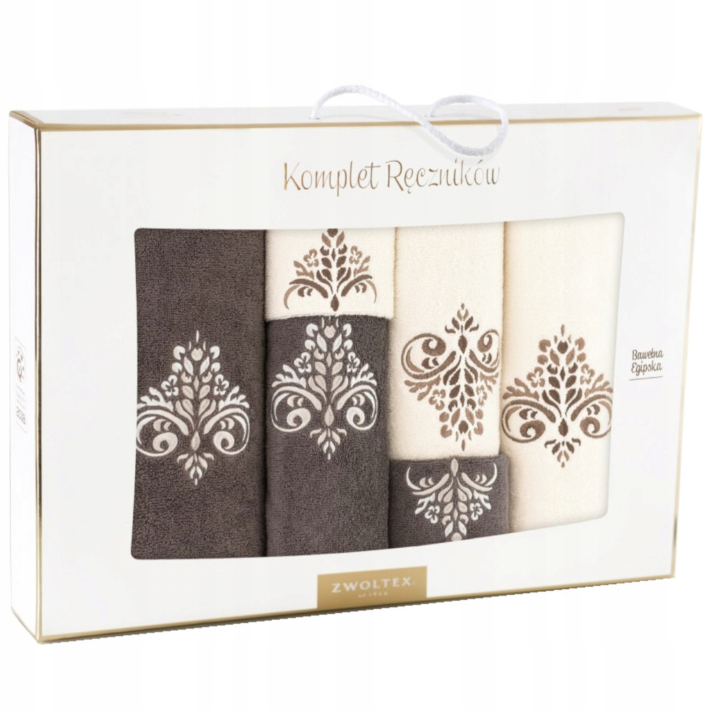 6-częściowy komplet ręczników jest wykonany ze szlachetnej bawełny egipskiej, zdobionych haftem, który po mistrzowsku dopełni aranżacje w Państwa łazience. Opakowany w eleganckie pudełko komplet, z powodzeniem może stanowić jako oryginalny prezent.