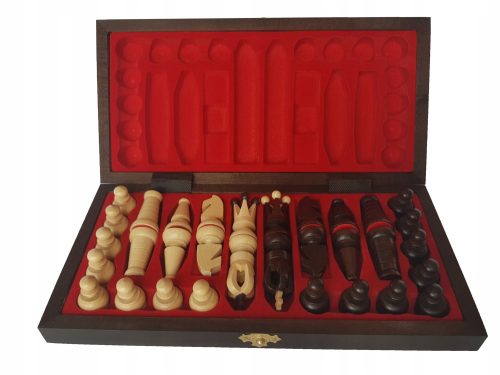 Każdy szach ma swoje miejsce, ułatwia to pakowanie oraz wizualne spostrzeżenie czy wszystkie szachy są w komplecie.