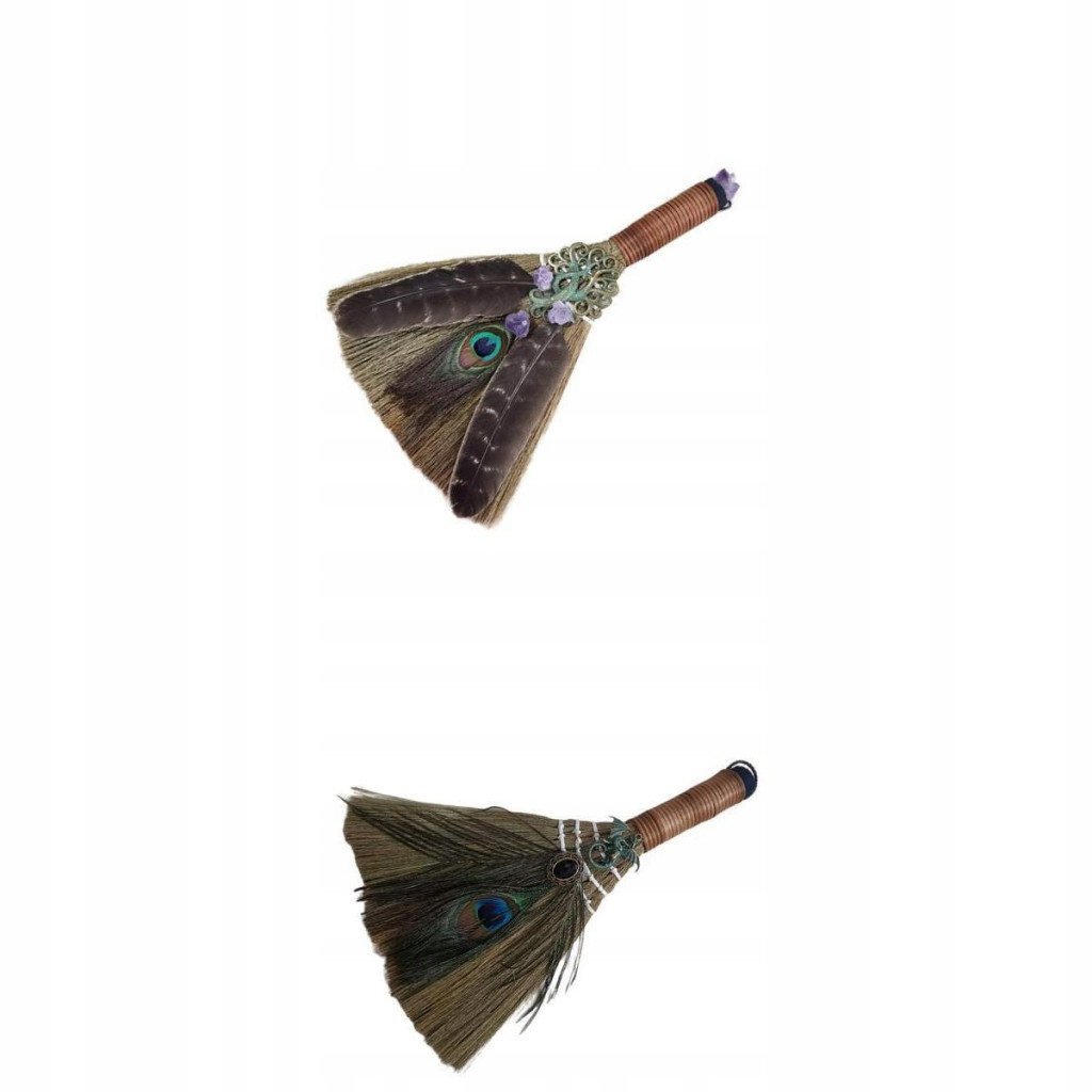 2 . Wisząca Miotła Ołtarzowa Z Miotłą Z Piór Na ścianę Zestaw Mioteł Halloween