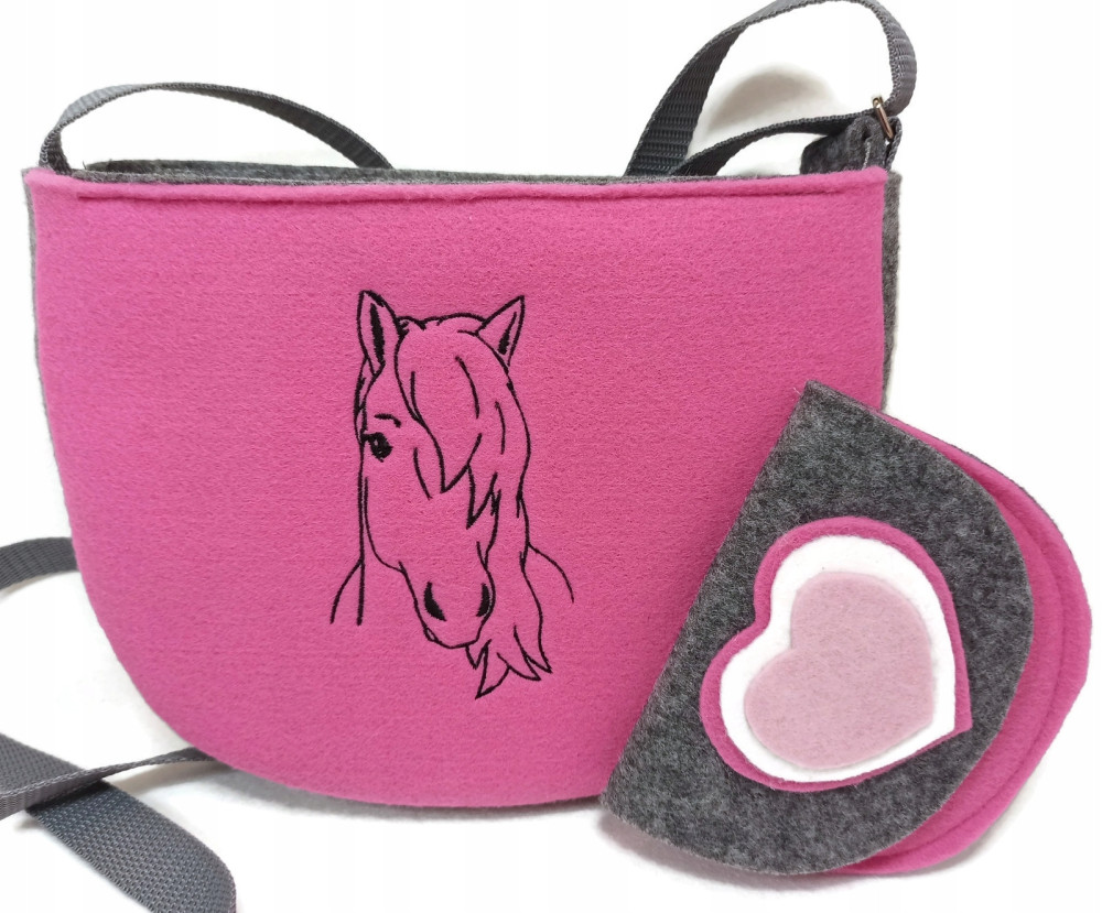 Torebeczka z haftowanym konikiem plus portfelik, zapinana na suwak, długość paska regulowana,