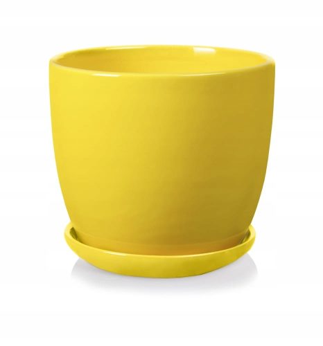 Łącząca w sobie prostotę i elegancję - ceramiczna doniczka żółta z podstawką w zestawie