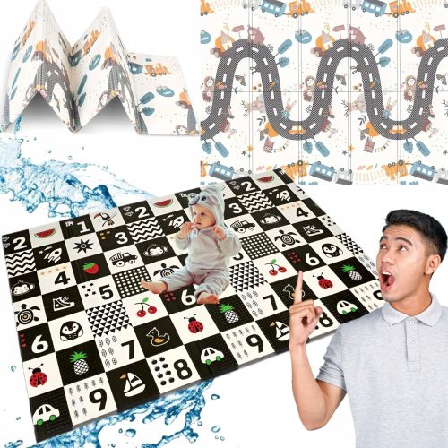 Covoraș educațional din spumă pliabil pentru copii nukido DUBLE FACE mare 150x200