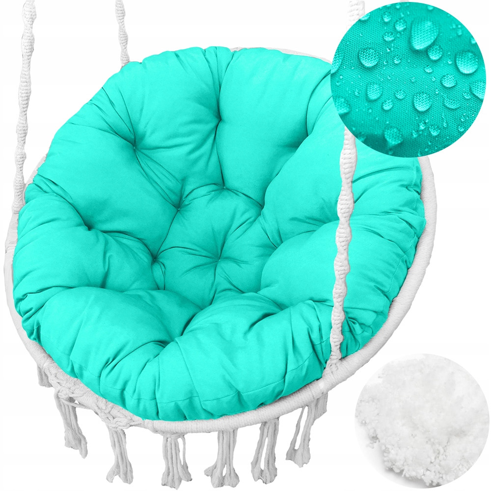 Poduszka pasuje zarówno do huśtawek wiszących typu bocianie gniazdo / kokon jak i do foteli stojących, okrągłych typu Papasan / Jordrup.
