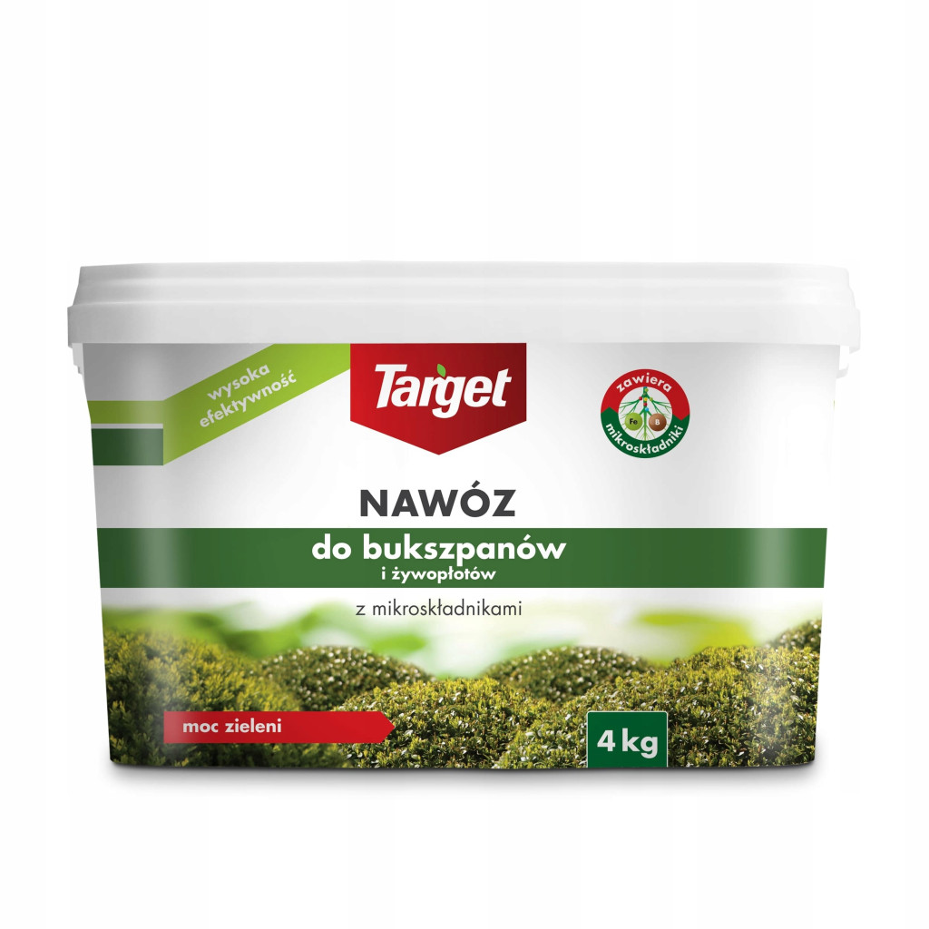 Nawóz granulowany do bukszpanów z mikroskładnikami, jest nawozem WE typu NPK, zawierającym podstawowe składniki pokarmowe: azot, fosor, potas, magnez i siarkę oraz mikroskładniki takie jak: bor, miedź, żelazo, mangan i cynk. Optymalny skład nawozu zapewnia intensywny rozwój bukszpanów i żywopłotów. Zwiększa odporność bukszpanów na choroby.
