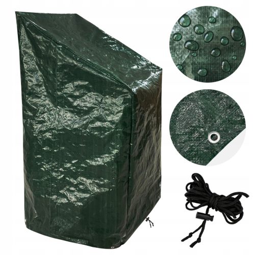 Pokrowiec posiada wymiary 66x66 cm u dołu, oraz zróżnicowaną wysokość – 120 cm z jednej strony i 80 cm z drugiej, co sprawia, że idealnie dopasuje się do większości standardowych krzeseł ogrodowych.