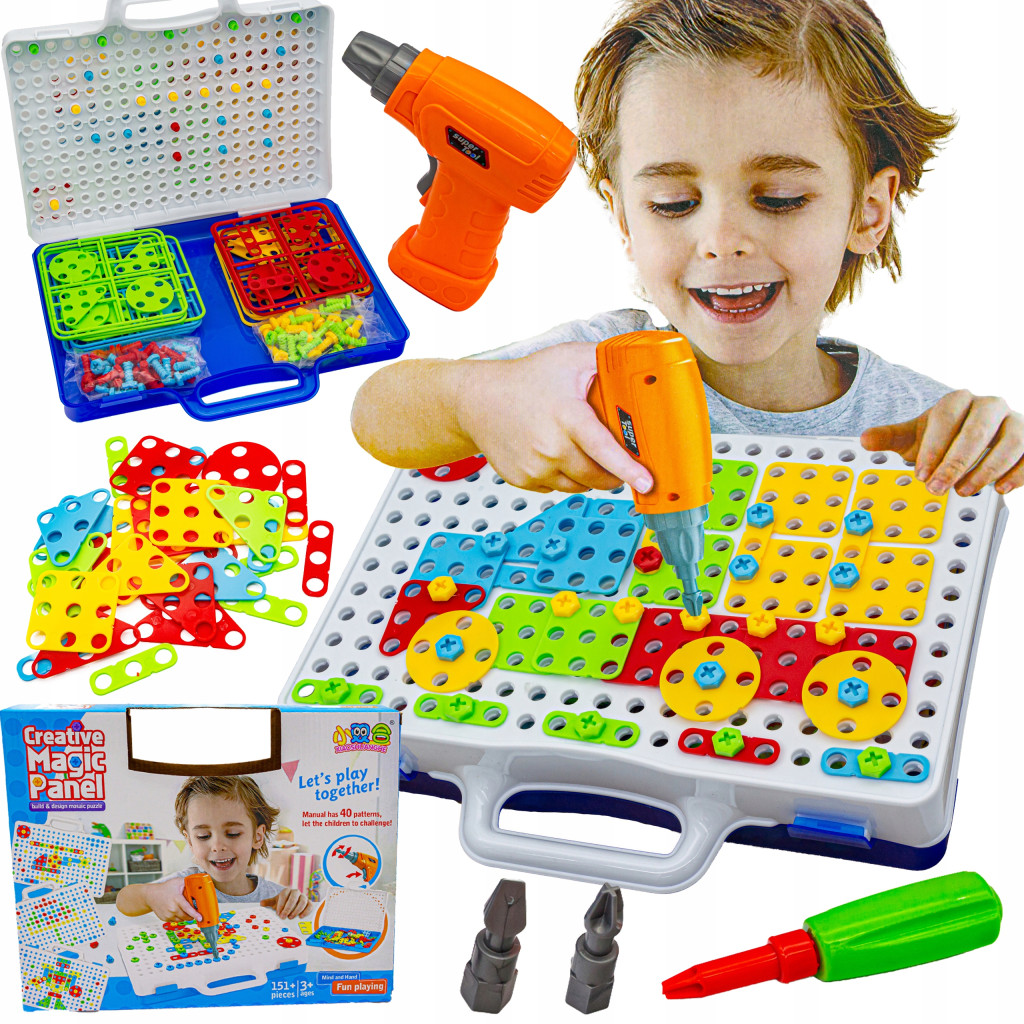 Zestaw elementów konstrukcyjnych w zestawie z śrubokrętem i wkrętarką przypadnie do gustu każdemu małemu majsterkowiczowi.